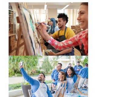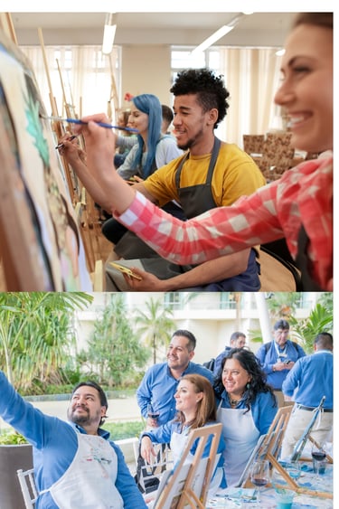 Enhance the relationships that drive your organization with our innovative team building experiences. Whether you aim to uplift team spirit, improve cooperation, or celebrate your team's successes, our corporate paint and sip events yield significant outcomes.